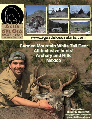 Come and hunt in a different and unique ranch “Agua del Oso Safaris & Camp, for a Carmen Mountain Whitetail Deer in the Sierra del Burro, 54 miles SW from Ciudad Acuña, in the State of Coahuila, Mexico; just 60 miles SW from Del Rio, TX.